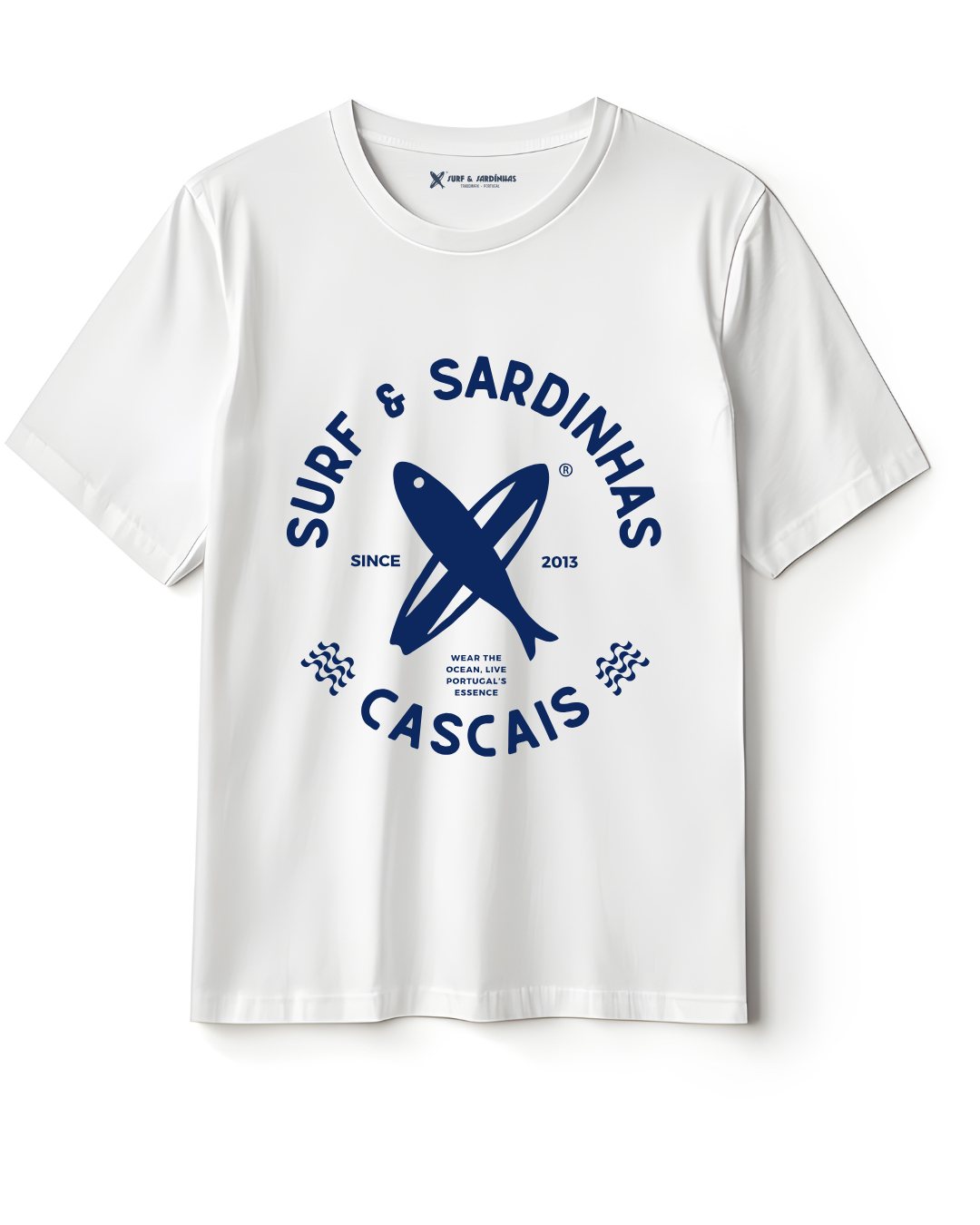 Arte desenhada pelo artista português Sérgio Marques. A Surf & Sardinhas é uma marca registada portuguesa que celebra a cultura do mar e o espírito descontraído da nossa costa, juntando design original e produção sustentável.
