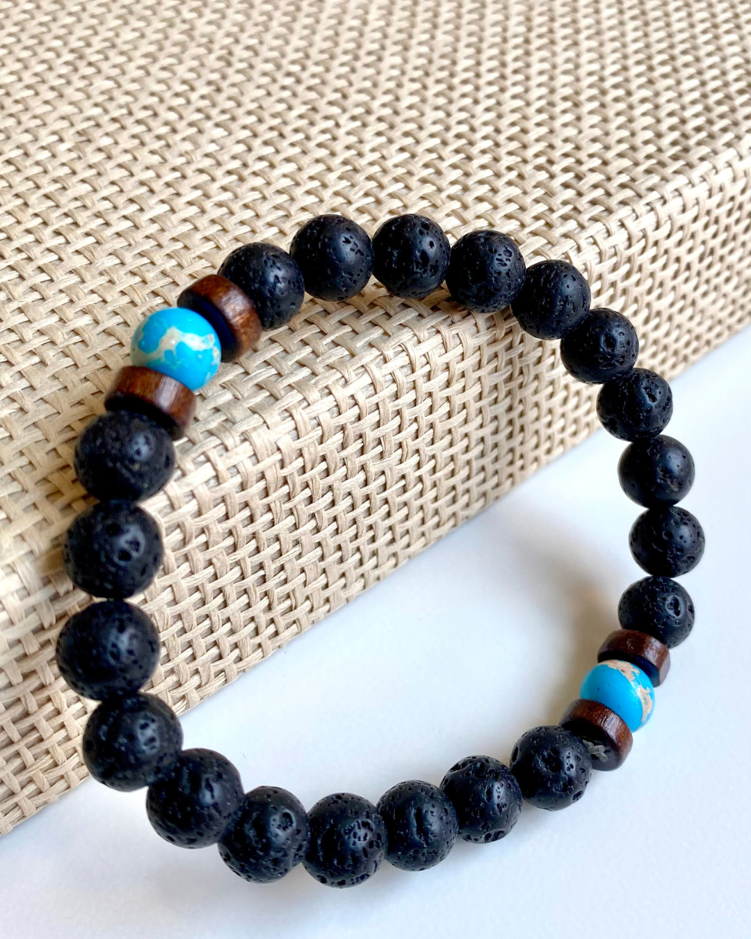Pulseira Pedra Vulcânica – Azul com madeira